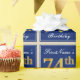 Este sencillo y elegante diseño de papel de embalaje presenta un mensaje personalizado como "Cumpleaños 74 de FirstName" (con el "74th" con un aspecto de color falso/imitación de oro) dentro de un área cuadrada de color azul con un simple contorno de borde. El nombre se encuentra en un texto elegante de color blanco tipo script, y se puede personalizar. El envolvimiento de papel como este podría ser usado para envolver regalos de cumpleaños para alguien que está celebrando su cumpleaños setenta y cuatro. [~Z0000221]