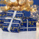 Este sencillo y elegante diseño de papel de embalaje presenta un mensaje personalizado como "ANameHere's 92nd Birthday" (con el "92nd" con un aspecto de color falso/imitación dorado) dentro de un área cuadrada de color azul con un sencillo contorno fronterizo. El nombre se encuentra en un texto elegante de color blanco tipo script, y se puede personalizar. El envolvimiento de papel como este podría ser usado para envolver regalos de cumpleaños para alguien que está celebrando su cumpleaños noventa. [~Z0000221]