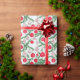 Papel de envolvimiento elegante con acuarela de color rojo y verde de hojas y decoración de árbol de Navidad en un fondo blanco. Perfecto para envolver un regalo retro y elegante para Navidades o para una ocasión festiva de invierno.