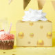 Elegante y hermoso marco metálico dorado sobre fondo dorado Papel de envolver. Papel de envolver de moda moderno y bonito. Confeti de oro sobre papel de envolvimiento de regalo dorado.
