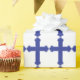 Elegante diseño de cruz azul real para bebés bautizados y cristianos.