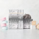 Elegante confeti negro y blanco plateado y copas de champán envolvente para regalo. Puede agregar el texto de su elección o eliminar el texto de ejemplo.