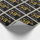 Este sencillo y elegante diseño de papel de embalaje presenta un mensaje personalizado como "NombreAquí es el cumpleaños número 58" (con el "58" con un aspecto de color falso/imitación dorado) dentro de un área cuadrada de color negro con un simple contorno de borde. El nombre se encuentra en un texto elegante de color blanco tipo script, y se puede personalizar. El envolvimiento de papel como este podría ser usado para envolver regalos de cumpleaños para alguien que está celebrando su cincuenta y ocho cumpleaños. [~Z0000217]
