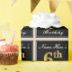 Este sencillo y elegante diseño de papel de embalaje presenta un mensaje personalizado como "Nombre-Aquí es el sexto cumpleaños" (con el "sexto" con un aspecto de color falso/imitación de oro) dentro de un área cuadrada de color negro con un simple contorno de borde. El nombre se encuentra en un texto elegante de color blanco tipo script, y se puede personalizar. El envolvimiento de papel como este podría ser usado para envolver regalos de cumpleaños para alguien que está celebrando su sexto cumpleaños. [~Z0000217]