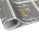 Este sencillo y elegante diseño de papel envolvente incluye un mensaje personalizado como "Name-Here's 1st Birthday" (con el "1st" con un aspecto falso/imitación de color dorado) dentro de un área cuadrada de color gris con un simple contorno de borde. El nombre se encuentra en un texto elegante de color blanco tipo script, y se puede personalizar. El envolvimiento de papel como este podría ser usado para envolver regalos de cumpleaños para alguien que está celebrando su primer cumpleaños. [~Z0000222]