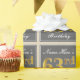 Este sencillo y elegante diseño de papel envolvente incluye un mensaje personalizado como "Nombre-Aquí es el 63 cumpleaños" (con el "63" con un aspecto de color falso/imitación dorado) dentro de un área cuadrada de color gris con un simple contorno de borde. El nombre se encuentra en un texto elegante de color blanco tipo script, y se puede personalizar. El envolvimiento de papel como este podría ser usado para envolver regalos de cumpleaños para alguien que está celebrando su sexagésimo tercer cumpleaños. [~Z0000222]