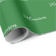Elegante nombre de guión personalizado, texto, patrón de monograma lindo Papel de ajuste de regalo de cumpleaños. texto blanco, fondo verde.