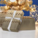 Elegante guión de oro marrón Feliz Navidad, temporada de vacaciones brillante o papel de envolver regalo mate