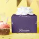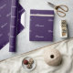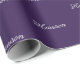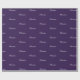 Elegante nombre de guión personalizado, texto, patrón de monograma Papel de ajuste de regalo de cumpleaños. texto blanco, fondo violeta oscuro morado.