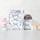 Patrón monocromo de tela azul francés con ilustraciones vintage de un caballo árabe blanco, hortensias exuberantes ricamente decoradas con corbatas de arco, diseño súper moderno y preppy para todos los amantes de caballo y ecuestre, soltera, cumpleaños de chica, dulce dieciséis, graduación, envoltura de regalo de vacaciones o cualquier otra ocasión.
