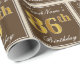 Este sencillo y elegante diseño de papel de embalaje presenta un mensaje personalizado como "Cumpleaños 86 de FirstName" (con el "86" con un aspecto de color falso/imitación de oro) dentro de un área cuadrada de color marrón con un simple contorno de borde. El nombre se encuentra en un texto elegante de color blanco tipo script, y se puede personalizar. El envolvimiento de papel como este podría ser usado para envolver regalos de cumpleaños para alguien que está celebrando su ochenta y seis cumpleaños. [~Z0000223]