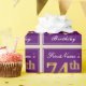 Este sencillo y elegante diseño de papel de embalaje presenta un mensaje personalizado como "Cumpleaños 74 de FirstName" (con el "74″ con un aspecto de color falso/imitación dorado) dentro de un área cuadrada de color violeta con un simple contorno de borde. El nombre se encuentra en un texto elegante de color blanco tipo script, y se puede personalizar. El envolvimiento de papel como este podría ser usado para envolver regalos de cumpleaños para alguien que está celebrando su cumpleaños setenta y cuatro. [~Z0000220]