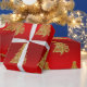 Diseño moderno de Navidades de oro y rojo.