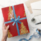 Papel De Regalo Elegante patrón de árbol de Navidad dorado y rojo