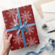 Este papel de envoltura presenta un sofisticado patrón de copos de nieve en rojo y blanco, perfecto para añadir un toque de elegancia a sus regalos de vacaciones. Ideal para celebraciones festivas con un toque moderno.