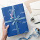 Papel De Regalo Elegante personalizado azul nombre de guión texto