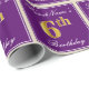 Papel De Regalo Elegante, púrpura, falso oro 6º cumpleaños + nombr