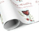 Elegante Papel de envolver de vino rojo de cumpleaños número 50. 50.º regalo de la fiesta de cumpleaños para ella o él. Vidrio rojo, rosas y ramas de fondo blanco. El texto es totalmente personalizable - personalizarlo con tu nombre y cualquier edad - 30.º 40.º 50.º 70.º 80.º 90.º 100.