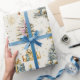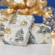 Elegantes árboles navideños con acuarela vintage adornan este rollo de papel de envoltura vacacional. El oro y la plata predominan entre los muchos colores de los baudibles sobre los pinos de nieve verde azul y los divertidos regalos y paquetes que también están a lo largo del patrón. Las estrellas doradas brillantes son adorables toppers y los copos de nieve plateados caen sobre el fondo cremoso claro.