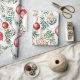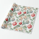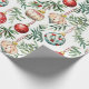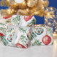 Un diseño elegante que incluye adornos de árboles de Navidad deleitará a tus amigos y parientes que reciben tus regalos envueltos en este encantador papel de envolver. Se trata de un delicado patrón acuático de bayas vacacionales vintage que se mezclan con la vegetación Yuletide fina y las bayas rojas. Predominan los colores de las bombillas el rojo apagado, el azul claro y la crema.