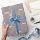 Elegante papel de envolvimiento de diseño vintage con estampado de vieiras florales y puntos de polka con salvia y violeta