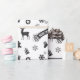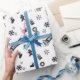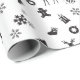 Una repetición impecable en blanco y negro de elementos Navidades -medias, hombre de pan de jengibre, copos de nieve, reno, adornos navideños, velas, árbol de Navidad y las palabras "Feliz Navidad"- en ilustracion. Podría ser apropiado para ocasiones solemnes de Navidades.