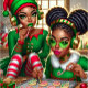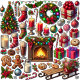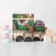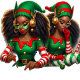 Los elfos rodeados por una bandeja de galletas de vacaciones, incluyendo los girasoles de menta y los diseños de árboles de Navidad, junto con regalos envueltos y decoraciones navideñas, creando una escena cálida y caprichosa perfecta para la temporada navideña.