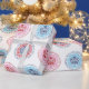 Elegante KING CHARLES III CORONATION papel de envoltura en los colores oficiales rojo, rosa, azul claro y azul oscuro. El diseño muestra el rosa de Inglaterra, el cardo de Escocia, el fodil de Gales y el champagne de Irlanda del Norte en un hermoso emblema floral, y esto se repite en un patrón de baldosas por todas partes. Este papel de envoltura del Rey Carlos III sería una adición ideal a tus regalos patrióticos, mientras celebras esta memorable ocasión en la historia real británica. Hay regalos coincidentes disponibles.