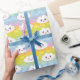 Agrega un acento lindo y colorido a tus regalos con este papel de envoltura de nubes kawaii. Cuenta con nubes de emoji con un patrón de ondas coloridas. Este papel de envoltura en la nube será perfecto para la ducha de bebé y los favores y regalos de cumpleaños.