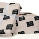Empaquetado de papel de envolver con su logotipo y su sitio web o medios sociales. Paquetes promocionales de embalaje de papel en negro.