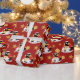 Navidades envolviendo papel con el ilustracion de un lindo pingüino emperador con un sombrero rojo de Papá Noel; Navidades diseño de personalizado de vacaciones para niños; Navidades diseño de personalizado de vacaciones para niños, de fondo rojo con personalizable plantilla de texto para tu nombre o mensaje; ilustrado por Radka Kavalcova
