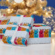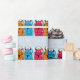 Envoltura de regalo para enfermeras, gatos vestidos como enfermeras con gorras de enfermera, estetoscopios y con insignias de nombre. Fondo de tiras de ritmo cardíaco