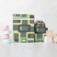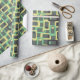 Este papel de envoltura tiene un diseño moderno de mediados de siglo de rectángulos redondeados con ovales en el interior en tonos retro de gris oscuro, amarillo pálido y marisco sobre un campo de gris claro. Si quieres el mismo diseño con colores diferentes, envíame un mensaje.