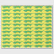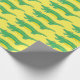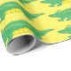 El papel de envolvimiento presenta un ilustracion de marca original de un caimán verde y amarillo, impreso en un fondo amarillo.