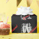 Elegante envoltura de regalo de copa de champán roja, negra y blanca. ¡Puedes agregar el texto que desees o eliminar el texto de ejemplo!