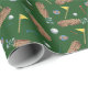 El patrón de equipo de golf en este papel de envoltura lo convierte en el envoltorio perfecto para un golfista. Para cumpleaños, el Día del Padre y otras ocasiones especiales, el golfista en su vida apreciará este patrón de pelotas de golf, clubs de golf, bolsos de golf, tés y banderas. El fondo es verde.