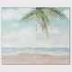 Escena de playa pintada con brisa isleña, con olas del océano, playa de arena y palmeras, con un hermoso cielo azul turquesa. Una playa tropical de verano, o diseño de boda de destino. ¡Un regalo de diseño mágico y moderno! ~ ¡Consulte mi tienda para ver todo el conjunto de la boda para este diseño!