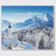 Una hermosa escena de invierno con montañas e iglesia, editar texto