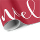 Este papel de embalaje elegante del día de fiesta ofrece la palabra "noel" repetido en caligrafía blanca moderna en un fondo rojo.