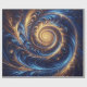 Un remolino de azul real y oro inspirado en la magia del espacio en este diseño de arte moderno.
