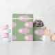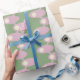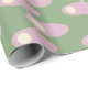 Este papel de envoltura tiene un diseño moderno de mediados de siglo de ovales rosados conectados por líneas rosadas con círculos de color blanco roto todo sobre un campo de verde claro. ¿Quieres colores diferentes? Mándame un mensaje.