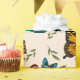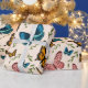 Papel de envoltura de mariposas con hojas verdes. El color de fondo es editable. Perfecto para regalo de cumpleaños de un chica y otras celebraciones.