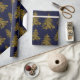 Árbol de Navidad brillante dorado, navidades abundan en azul oscuro sobre papel de envoltura. ¡Debes saber que tienes una foto!