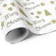 Un patrón de estrellas de oro, árboles de Navidad, bolas de Navidad y deseos para una Feliz Navidad! Papel de envolver elegante. Diseñado por Marions Artwork.