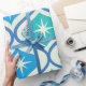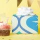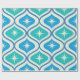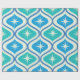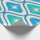 Se trata de un elegante patrón de estreno atómico moderno de mediados de siglo, colocado sobre ovales azules y verde azulados sobre fondo beige. Es un papel de envoltura de gran aspecto para cualquiera que ame los diseños geométricos retro