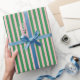 Patrón de franja vertical estrecha en papel de envolvimiento rosa y verde. Fun retro moderno contemporáneo tradicional delgado rayas verticales en color preppy rosa y verde Trabajos grandiosos como envoltura de regalo de los Navidades o por cualquier tiempo.