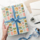 Añada un toque de elegancia nostálgica a sus regalos de vacaciones con este Navidad envuelto en papel con sellos de postaje vacacionales vintage en un fondo verde de menta pastel. Cada sello captura el encanto de las escenas clásicas de Navidades, haciendo que tus regalos parezcan haber viajado a través del tiempo para difundir alegría festiva.
