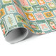 Añada un toque de nostálgica elegancia a sus regalos de vacaciones con este Navidad envuelto en papel con sellos postales de vacaciones vintage en un fondo azul pizarra. Cada sello captura el encanto de las escenas clásicas de Navidades, haciendo que tus regalos parezcan haber viajado a través del tiempo para difundir alegría festiva.