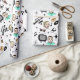 Aniversario o Aniversario de la década de los cincuenta envuelve regalos temáticos con gráficos de álbumes de vinilo, notas musicales, una pareja de bailes, batidos, tréboles, trébol de tv y otras divertidas imágenes retro.