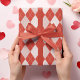 Este elegante papel de envolvimiento El día de San Valentín presenta un elegante diseño de estilo de argyle a gran escala con tintas rojas y ruidosas y líneas punteadas blancas.